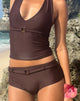 The Avi swim shorts feature a low rise micro fit with high leg shaping in brown. Complete with decorative belt with o ring detailing. Pair with the matching Towi swim tank top.