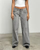 Low rise oversized jeans. Roomy feature a wide leg, floor length fit with a clean hem and front and back pockets. Finished with a branded back tab, button and rivets in a bleach grey denim. Complete the look with our white Cariter vest top.