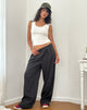 The Syra trousers in black pinstripe tailoring, feature a low-rise design, singular button and zip closure, relaxed fit and wide leg. Pair with the Dax vest.