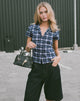 The Wilman Shirt features a loose regular fit with short cap sleeves and button up details. Finished with a collared neckline in a dark blue tartan woven fabric. Style with a pair of Skater Shorts.